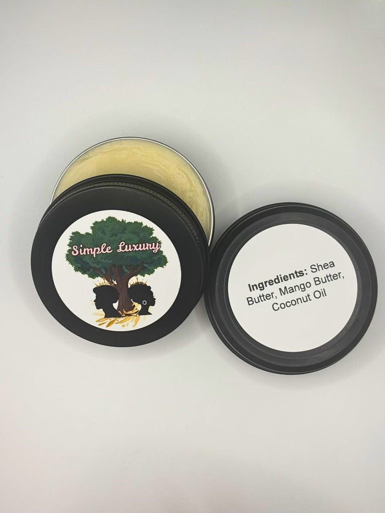 Our same three-ingredient body moisturizer, made with shea butter, mango butter, and coconut oil, contained in a 2-ounce aluminum black tin—perfect for men who travel!